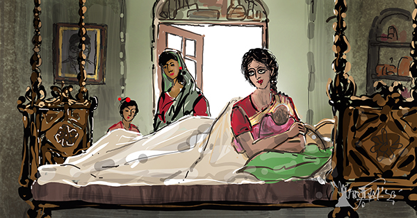 দরজার কাছে দাঁড়িয়েই শাশুড়ি বললেন, ‘একতলার এই ঘরে আঁতুড় হওয়ায় সুবিধেই হল। পায়খানা যেতে তোমাকে আর ওপর-নীচ করতে হবে না।’