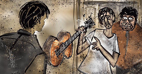 পুরুষ : নিতাই, গিটারটা এই লোকটাকে দেখা তো!
