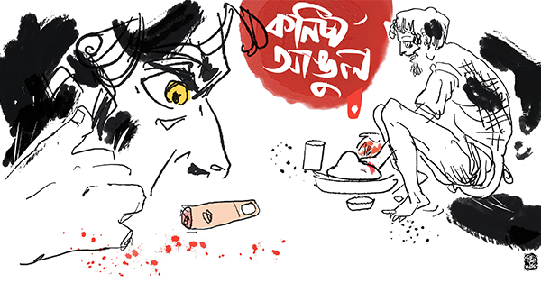সুমন ফোন রেখে দিয়ে কাটা আঙুলটার দিকে তাকায়। লাস্ট বেঞ্চে বসা ছেলেটাকে হেড মাস্টার এবার ক্লাসের বাইরে বার করে দিয়েছেন। পড়া না করে আসা কোনও দুর্বল ছাত্র এখন আর ক্লাসে নেই। সুমন নিজের হাতের দিকে তাকায়। তারপর ধরা গলায় ডাকে, ‘বুনোপাগলা!’