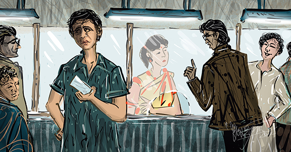 অবশেষে যেন ঘাম দিয়ে জ্বর ছাড়ল অনির্বাণের। দ্রুত হাতে নোটের বান্ডিল গুণে দিয়ে মেয়েটা হাঁকল, ‘নেক্সট—’