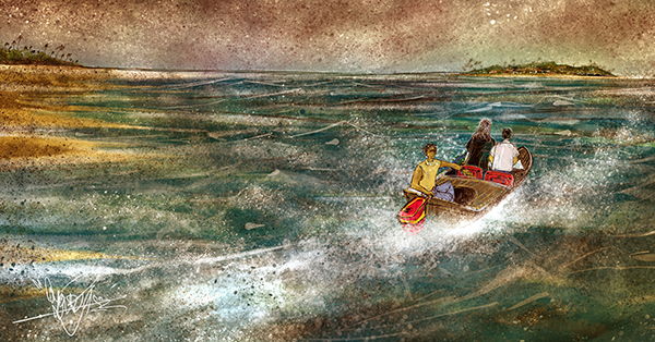 অস্থায়ী এই তাঁবুটার সামনের দিকে তাকালে সমুদ্রতট চোখে পড়ে। ওঁরা দুজনেই দেখতে পেলেন— সেখানে রাখা আছে চারটি স্পিডবোট। এই বোটগুলো ‘বিটিটু’ প্রকল্পের কাজেই ব্যবহৃত হচ্ছে। বোটগুলোর দিকে তাকিয়ে থাকতে থাকতেই কিশিমোতো হঠাৎ বললেন— শুনুন ডক্টর, এখন এসব ধর্মতত্ত্ব নিয়ে কূটকাচালির সময় নয়। বরং এক কাজ করা যাক। চলুন, আপনাকে রস দ্বীপে ‘বিটিটু’-র নতুন গবেষণাগারে নিয়ে যাই। বিলির ওয়র্মহোল কনসেপ্টটার পেছনে কোনও ফাউল প্লে থাকবার আপনার সন্দেহটা ঠিক না ভুল, তার একটা এসপার-ওসপার হয়েই যাক। … এই, কে আছেন? বোটের সারেং কে এখন ফ্রি আছেন? চটপট আসুন তো! আর আপনিও চলে আসুন ড: ঠাকুর, বোটে উঠে পড়ি আমরা…