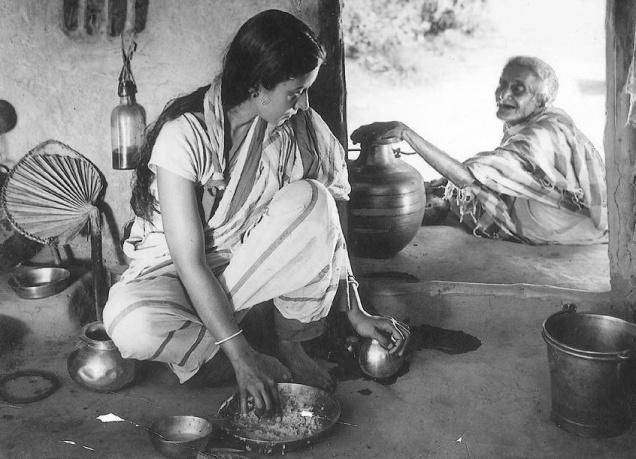 ‘‌পথের পাঁচালী’‌-তে ইন্দির ঠাকরুন যখন শেষবারের মতো ঘর ছেড়ে চলে যায়, সর্বজয়া তখন দুপুরে ভাত খাচ্ছে
