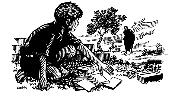 কভারের ছবি: ‘শিবু আর রাক্ষসের কথা’ গল্পের সত্যজিৎ-কৃত অলংকরণ