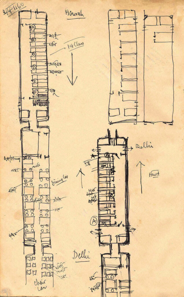 নায়ক — প্রবল বিখ্যাত এক মহানায়ক কলকাতা থেকে দিল্লি যাচ্ছেন একটা ট্রেনে। সেই যাত্রা, এবং তাঁর ও সহযাত্রীদের মধ্যে কথাবার্তা, প্রতিক্রিয়া— তা নিয়েই ছবি। সত্যজিৎ যেমন করেন, একেবারে ডিটেলে সেট-টার ছবি এঁকেছিলেন, আর চরিত্রগুলো কে কোথায় থাকবে— ফার্স্টক্লাস কুপ, চেয়ার কার, ডাইনিং কার-এ— একেবারে তাদের সিট নম্বর-সহ এঁকে রেখেছিলেন। এমনকী ট্রেনটার যাওয়ার ও ফেরার সময় বসার জায়গাগুলো কী হবে, তাও দেখিয়েছিলেন। এই স্কেচগুলোই অসামান্য শিল্পনির্দেশক বংশী চন্দ্রগুপ্তকে সাহায্য করেছিল একদম সত্যিকারের ট্রেনের মতো একটা সেট তৈরি করতে, সিনেমায় ধরাই যায় না যে এটা আসল ট্রেন নয়।